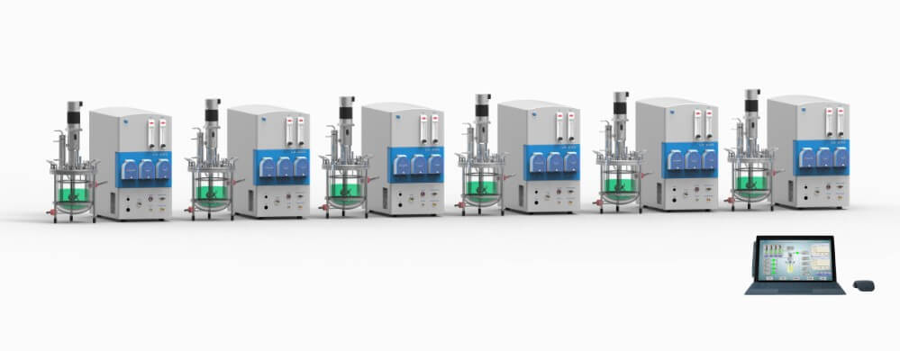 玻璃午夜精品电影由置於罐頂的攪拌電機以一定的轉速驅動旋轉,通過攪拌渦輪產生的液體漩渦及剪切力,將鼓入的空氣打碎成小氣泡,並均勻分散在培養液中。這樣,既提供了細胞生長所需氧,同時又使培養液濃度均勻,反應器的裝料係數一般為70~80%,係統通常還設有消泡裝置、參數測試元件、蛇管或夾套冷卻裝置等。