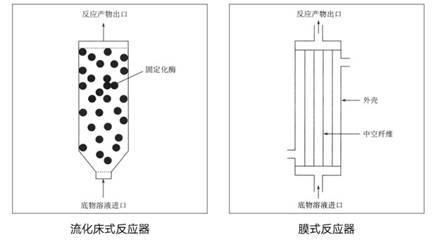 4. 膜式反應器:適用於遊離酶、固定化酶的催化反應,可應用於連續式操作,結構緊湊,集反應與分離與一體,利於連續化生產,但是容易發生濃差極化而引起膜孔堵塞,清洗較為困難。