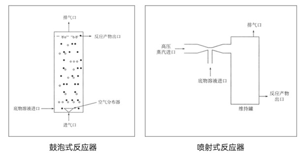 6. 噴射式反應器:適用於遊離酶的催化反應,可應用於連續式操作。體積小,混合均勻,催化反應速度快,適用於某些耐高溫酶的反應。